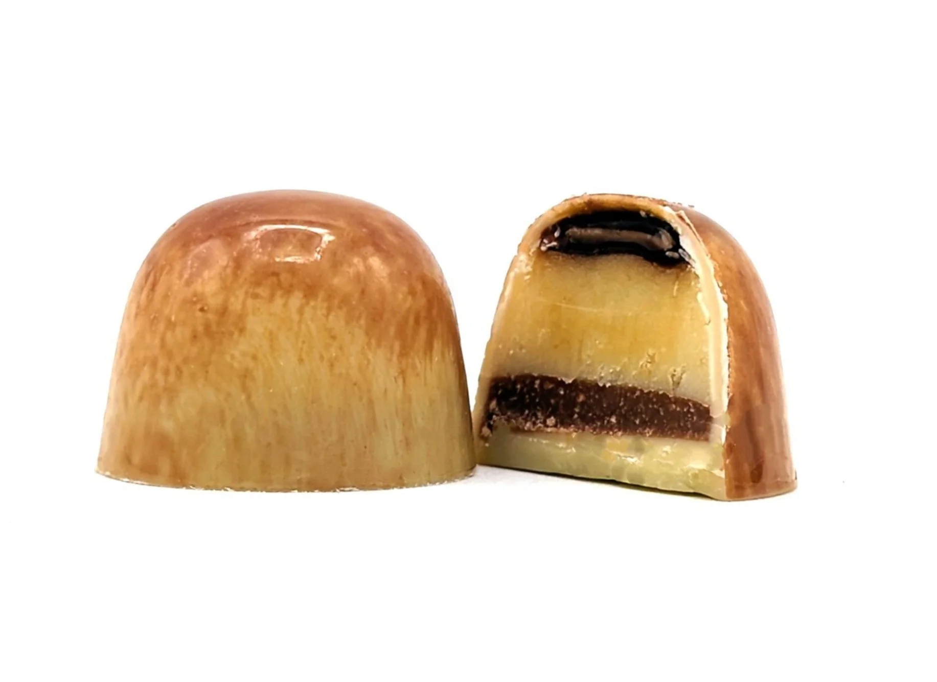 This yummy Italian dessert is all built inside a white chocolate bonbon! It has layers of coffee, mascarpone and sponge finger. It’s an offer you can’t refuse!
