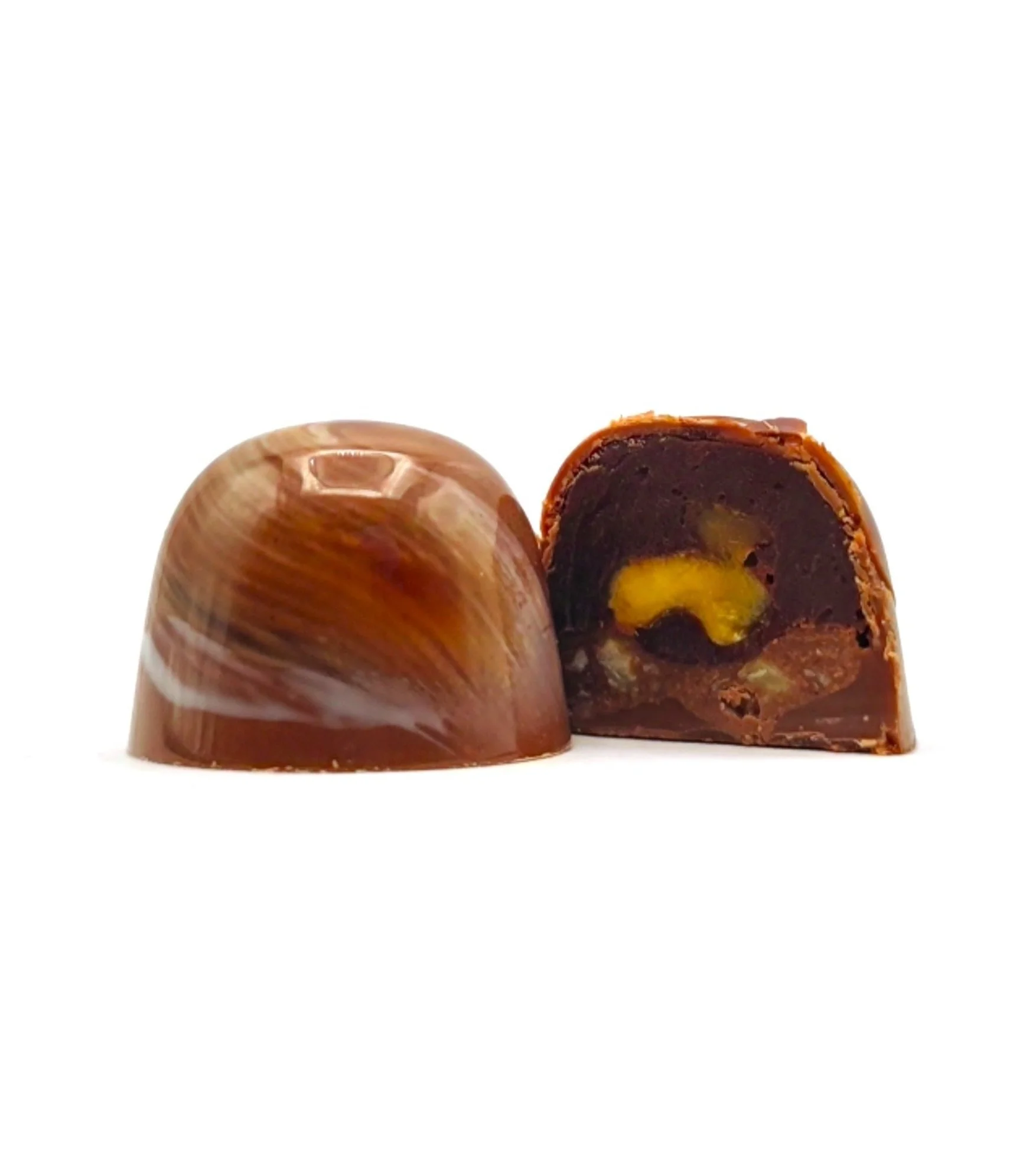 This amazing milk chocolate encapsulates all the delicious flavours of a fresh warm maple and pecan pastry. It's quite incredible and a 'must have' in any box!